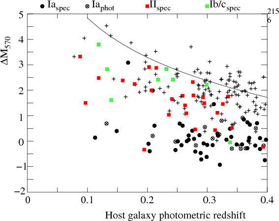 ![\begin{displaymath}\Delta M_{570} \equiv m_{570} - 2.5\log\left[(1+z)d(z)^2\right] -C