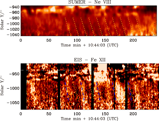 simultaneous use of the SUMER and EIS/Hinode spectrometer were used to study these