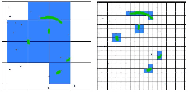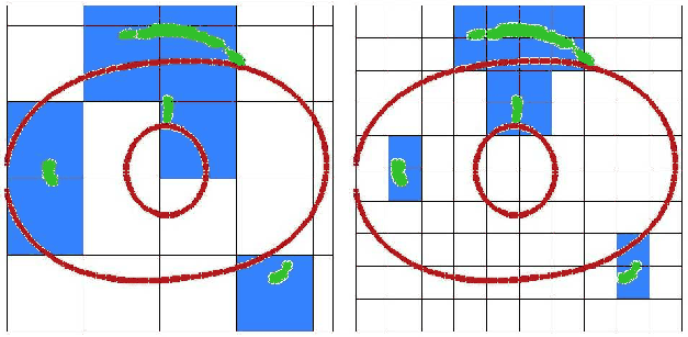 The second issue concerns the strong-lensing regime, in particular the arc positions. Since strong lensing is confined to much smaller scales than weak lensing, essential positional information is lost if the strong-lensing constraints are incorporated at the same resolution as weak lensing. This requires us to refine the grid near cluster centres until it is capable of resolving the exact arc positions (see Fig. 2).