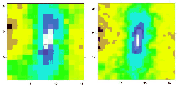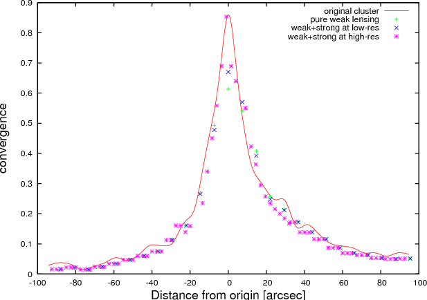 -functions for our joint lensing reconstruction, we have to address two issues concerning the resolution of our reconstruction grid. The first is related to the weak-lensing regime. If we want to average over at least ten galaxies per pixel, the typical background-galaxy density in the field of a cluster would not allow a higher resolution than
