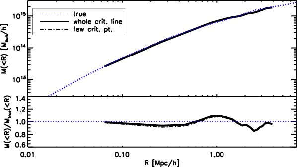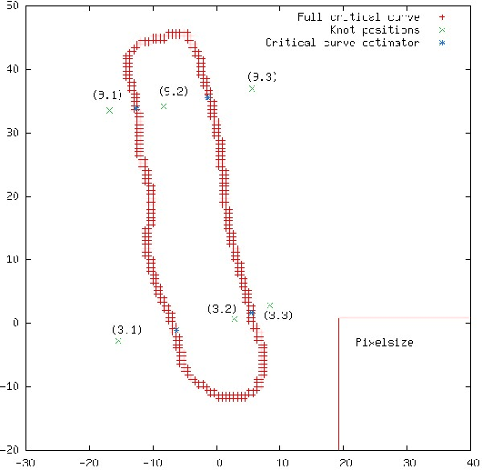 where i, j, n indicate the summation over the complete grid, and m over those pixels which are assumed to be traversed by a critical curve.