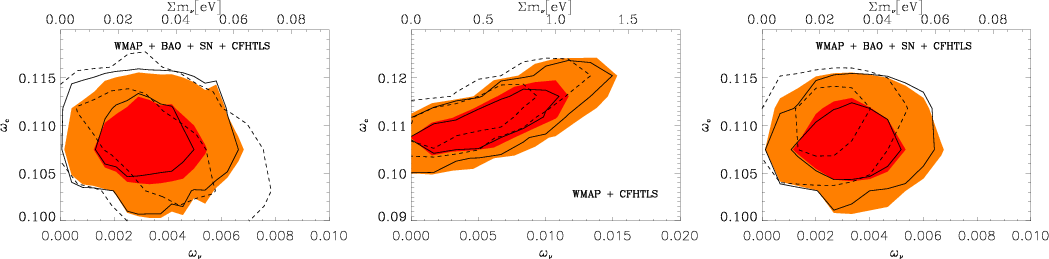Results. We obtain the first constraint on neutrino masses based on cosmic-shear data, and combine CFHTLS with WMAP, SDSS, 2dFGRS, Gold-set, and SNLS data. The joint analysis yields 0.03 eV