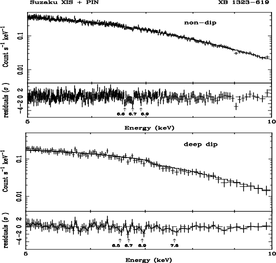(Table 2). A possible emission line consistent with 6.4 keV was seen in the Suzaku non-dip