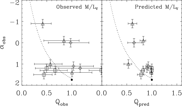 Left: observed mass-to-light ratio