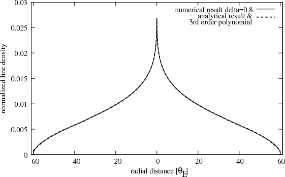 is small, the maximum change in deflection angle and magnification is for edge-on oriented disks, whose effective linear mass distribution can be calculated by integrating the surface density. The deflection angle of the combined point source point lens (PSPL) and edge-on disk model has no rotational symmetry, so we have to consider the vectorial deflection angle