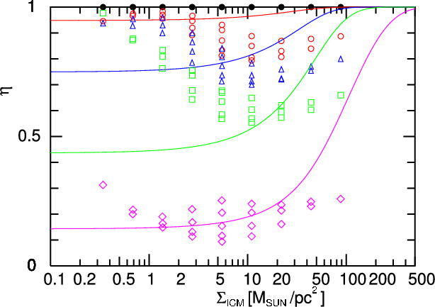 \frac{M_{\rm strip}}{M_{\rm ini}} = 1 - \exp\left[-0.01~ \Sigma_{\rm