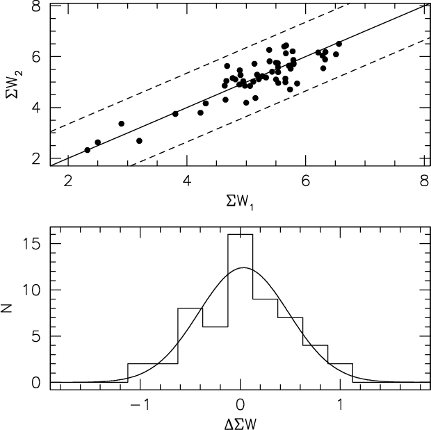To estimate the equivalent width measurement errors, we also measured the CaT line strengths independently on the individual spectra of each star in Leo I. A comparison of the two