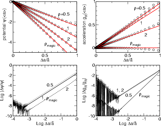 Top panels: exact potential and acceleration in a polar cell at radius