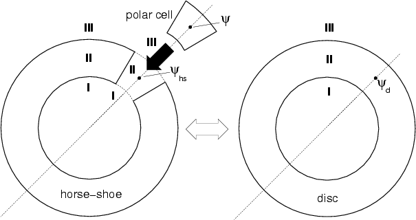 Figure 2: A polar cell is the superposition of a disc and a horseshoe with negative surface density. |