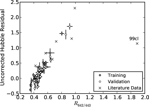 light curve shape and color parameters x1 and c. The ratio