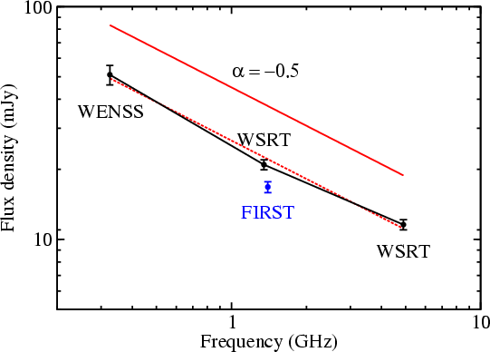 the flux density of the unresolved WSRT continuum detection at
