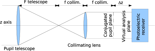 mount. At the focus of the telescope, a collimating lens makes the beam parallel, as seen