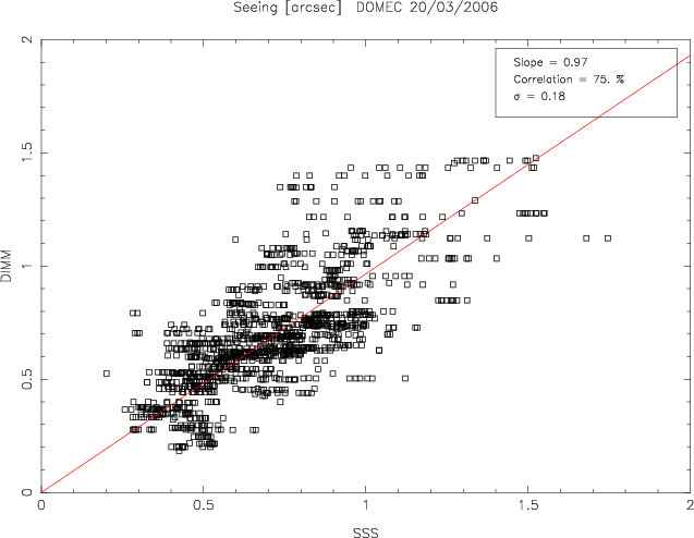 Figure 9: Correlation between seeings measured by SSS and DIMM. |