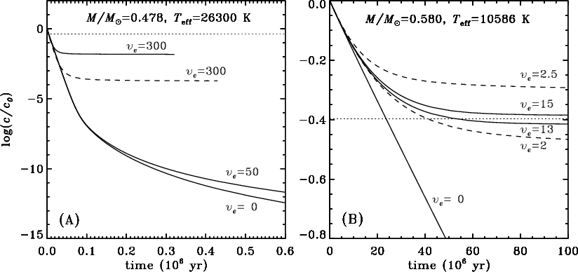 Assume an unmagnetized atmosphere, mixed by a thin convection zone but assume, for the moment, that all other mixing processes are negligible and that there is no mass loss. Then, atomic diffusion at the bottom of the surface
