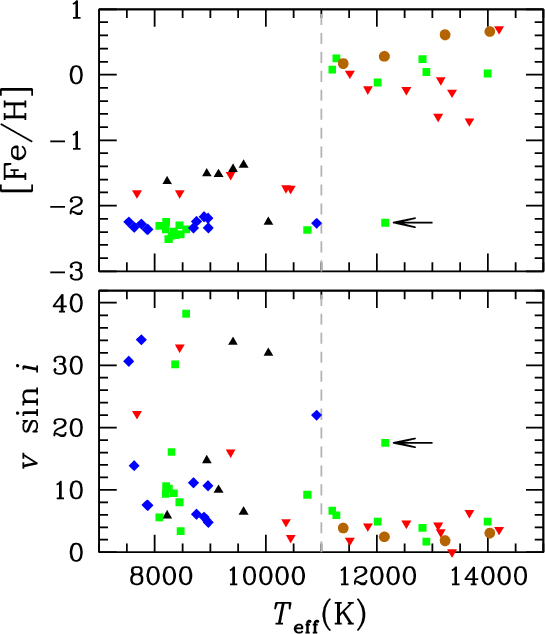 those below this limit are fast rotators and have normal abundances (see Fig. 1).