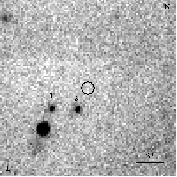objects, marked as 1 (B=25.6) and 2 (B=25.8) in Fig. 1, are detected at