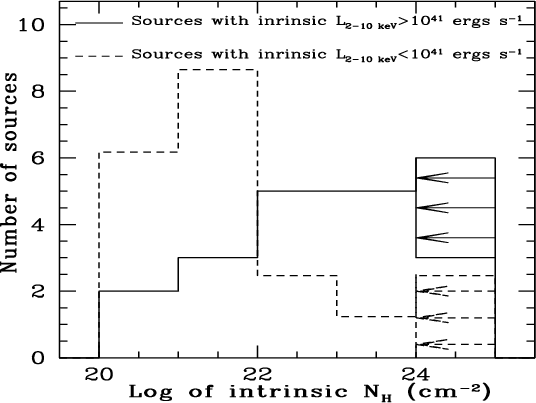 thirds of the X-ray sources, over all luminosities, present column