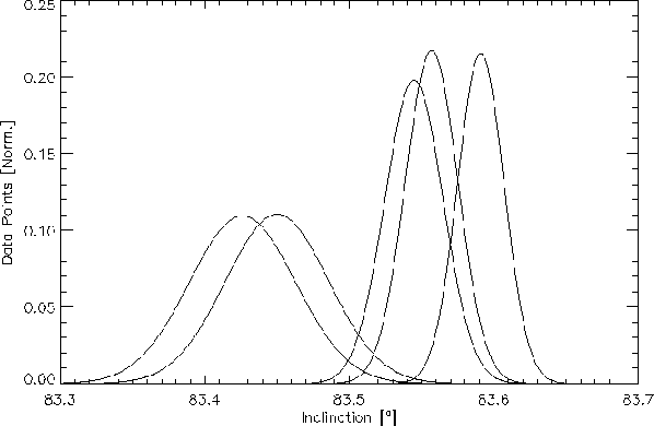 The bootstapped error distribution of the derived inclinations in model (B) at the five epochs is shown in Fig. 3, which shows the distributions to have very little overlap. We thus conclude that from a statistical point of view the change in inclination observed in the 2008 data is very significant.