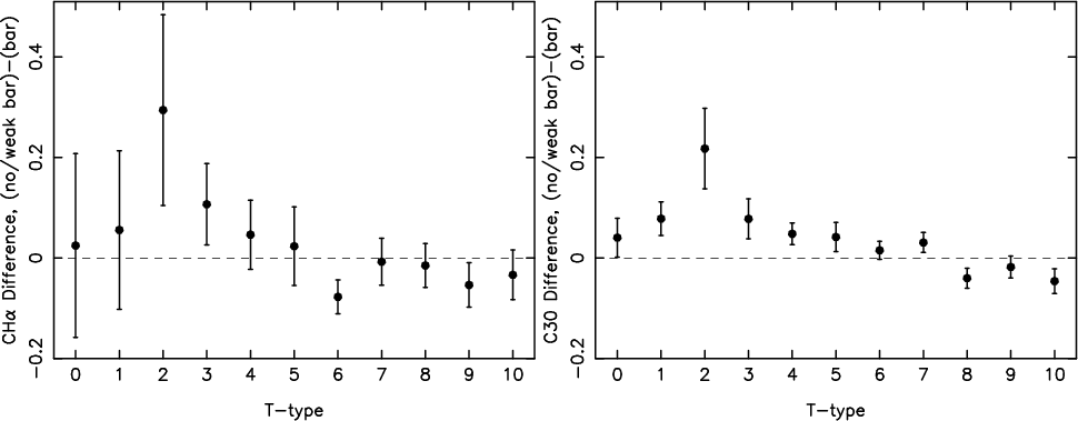 profile for SAb, SABb and SBb (T= 3) galaxies showed a