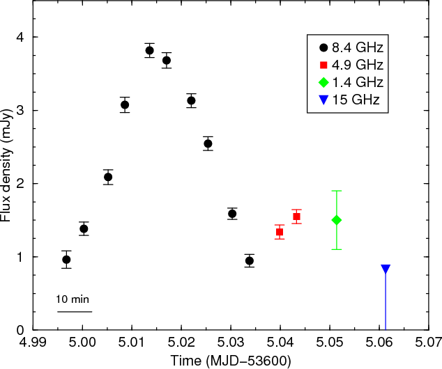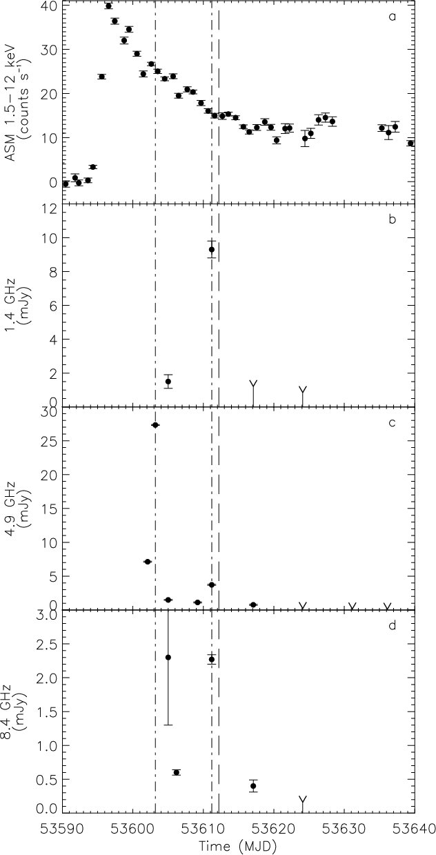 Finally, Rupen et al. (2005) detected XTE J1818-245 with the Very Large Array (VLA) at the