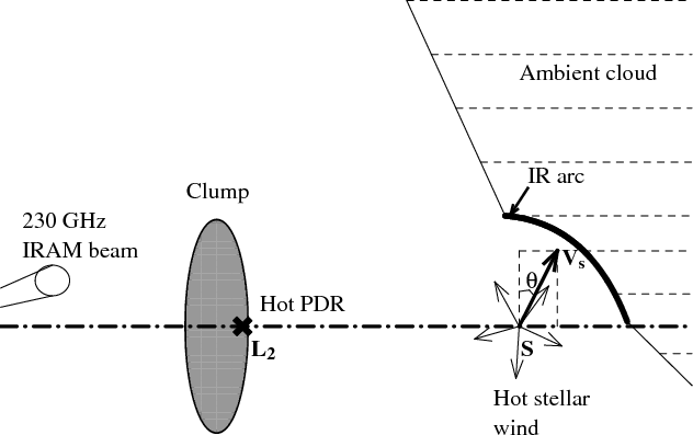 To summarize, the dense shell at the stellar wind/molecular cloud