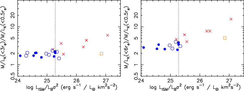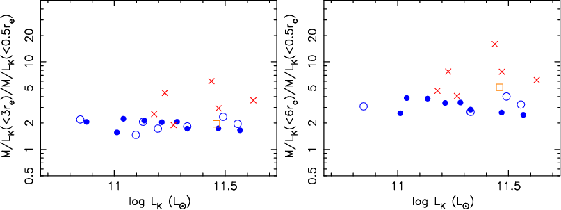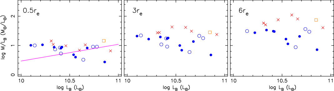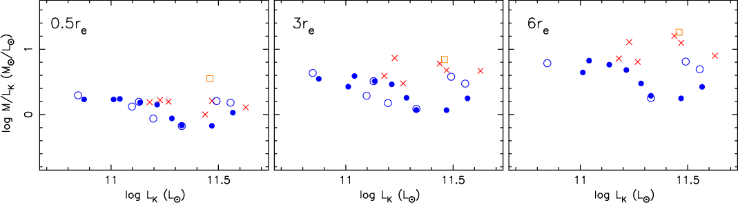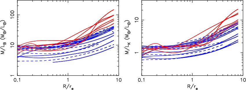 dominates the total mass in these regions. In the outer regions, M/LBand M/LK of the