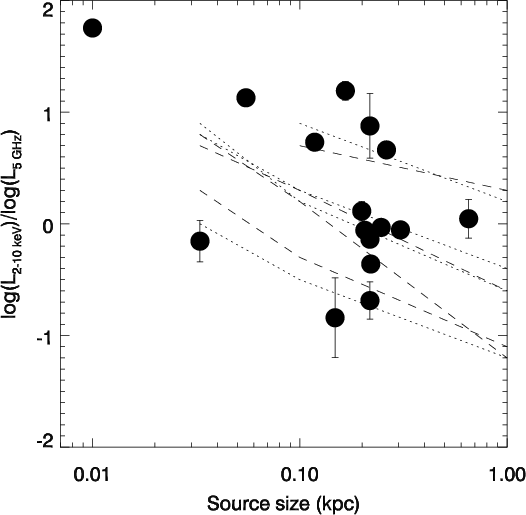 Understanding the origin of high-energy emission in these objects may have important implications on the birth and evolution of the ``radio power'' in the Universe. GPS sources were originally suggested to represent radio galaxies in the early stage of their life (typical ages <104 years, Fanti et al. 1995; Murgia 2003). This possibility was recently supported by the detection of mas-hotspot proper motions (Poladitis & Conway 2003; Gugliucci et al. 2005). Alternatively, as originally suggested by Gopal-Krishna & Wiita (1991), GPS sources could remain compact during their whole radiative lifetime, because interaction with dense circumnuclear matter impedes their full growth.