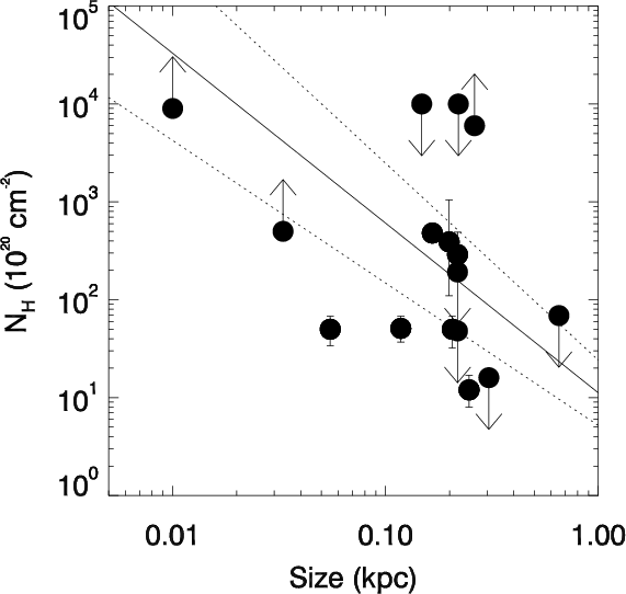 1022 cm-2 could lead to a significant underestimate of dynamical age determinations based on the hotspot recession velocity measurements.