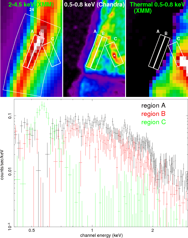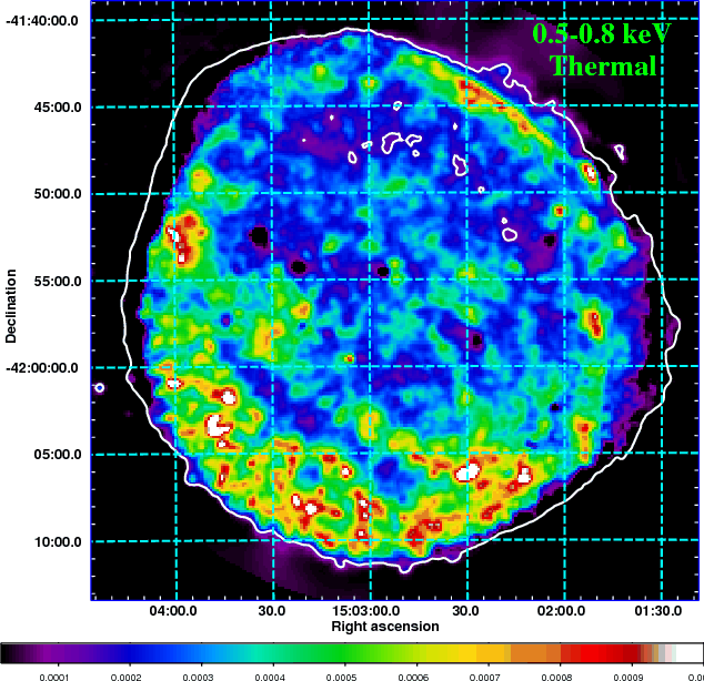 - Our pure thermal image in the 0.5-0.8 keV band shows that even in this soft band, the emission at the bright limbs is mainly associated with the non-thermal component.
