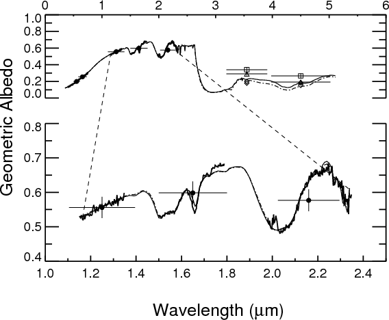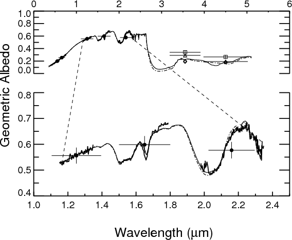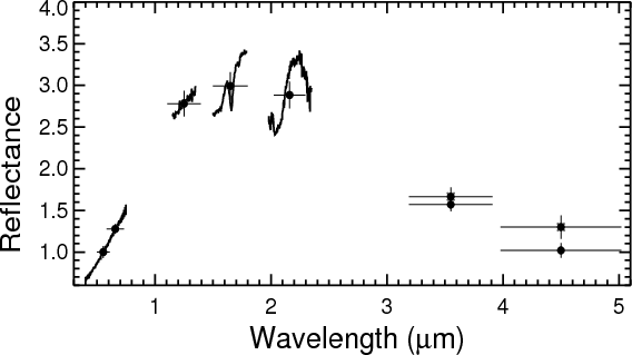The ground-based reflectance data have been complemented and extended to longer wavelengths with