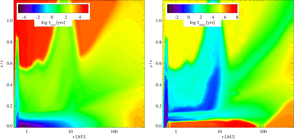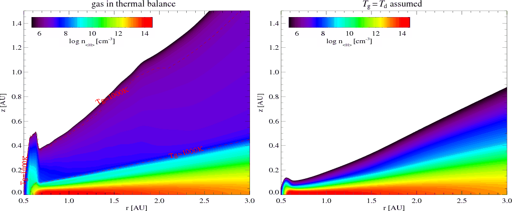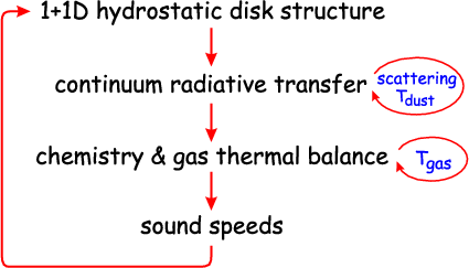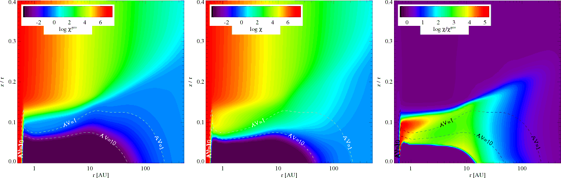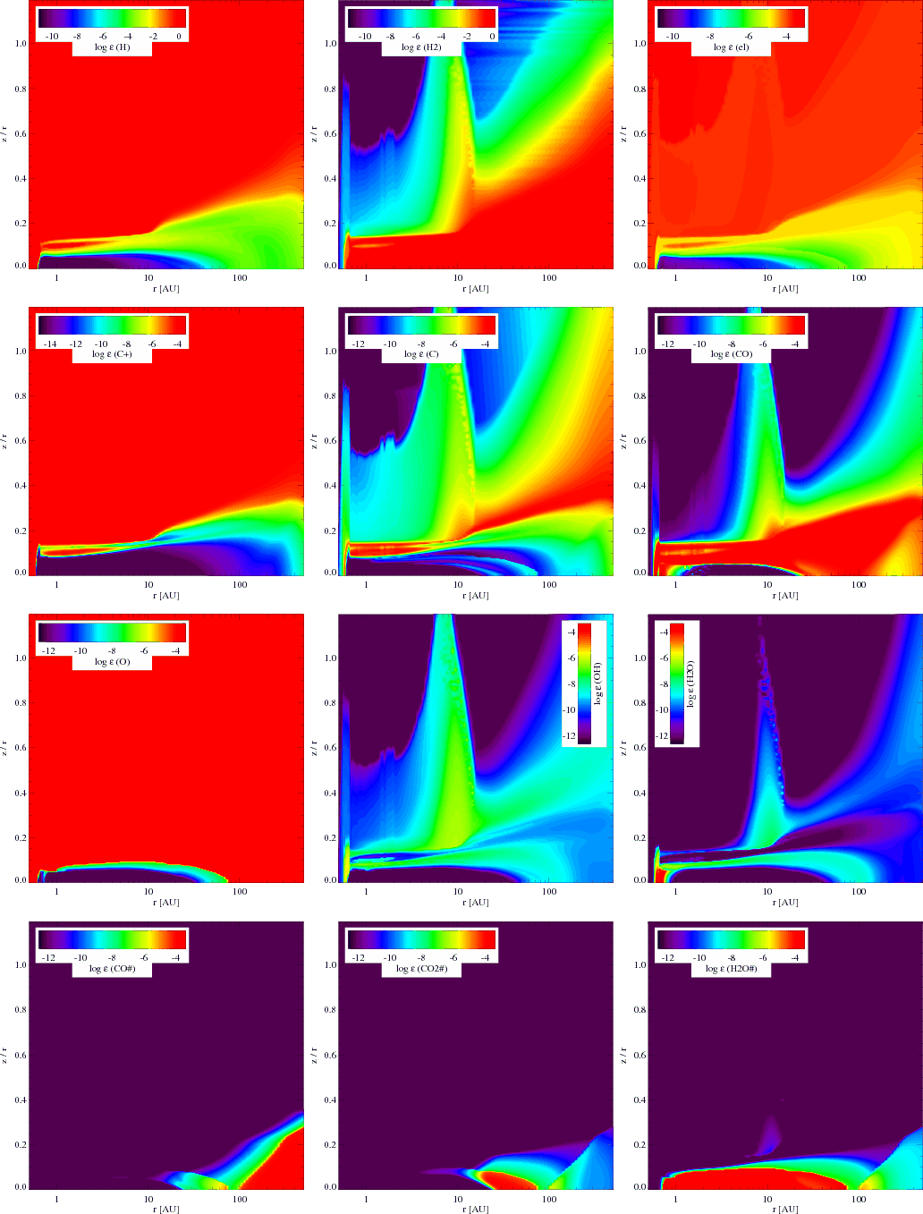 vertical hydrostatic disk structure (e.g. Woods & Willacy 2008; Kamp & Dullemond 2004; Meijerink et al. 2008). Kamp & Dullemond use a chemical reaction