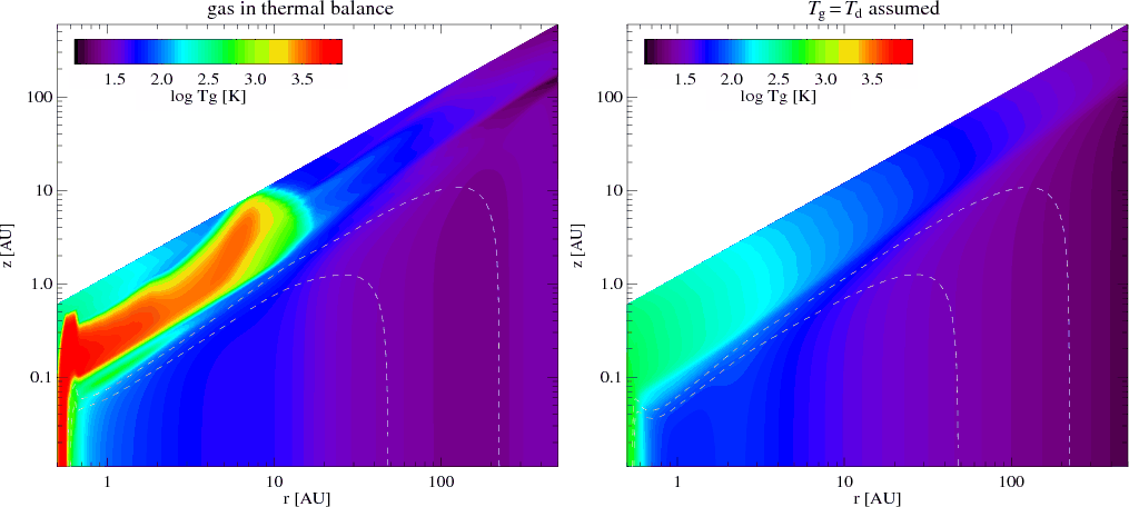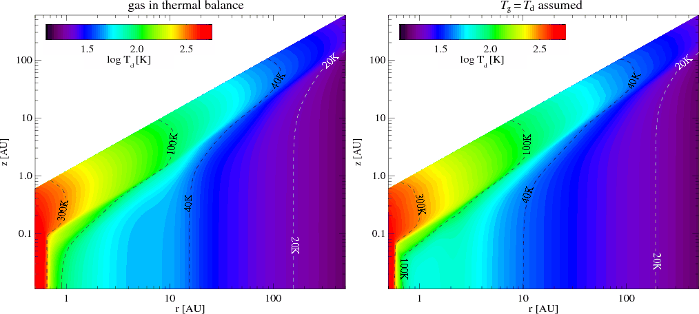 a few hundred Kelvin (Jonkheid et al. 2004; Kamp & Dullemond 2004; Dullemond et al. 2007). The
