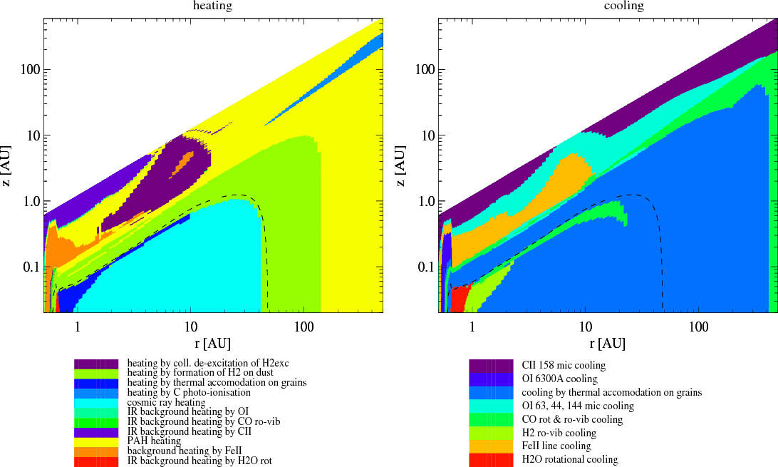 resemble those of cool stellar atmospheres and, thus, the heating and cooling is more like in stellar atmospheres. The application of heating and cooling rates known from PDR and interstellar cloud research alone can be misleading here, so more work needs to be invested to identify the leading heating and cooling processes.