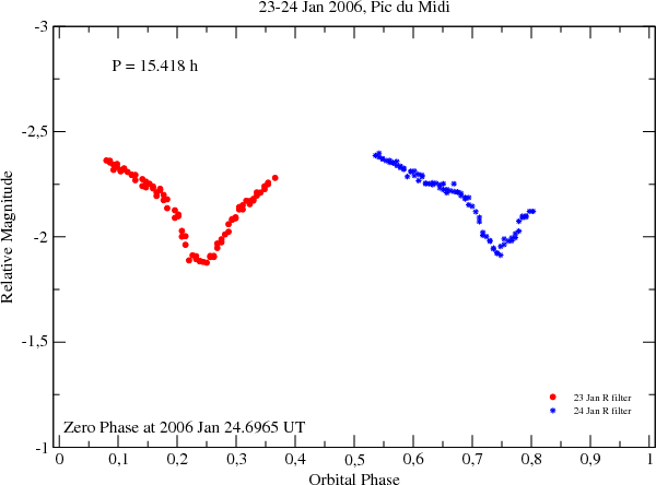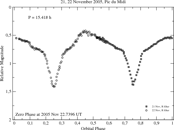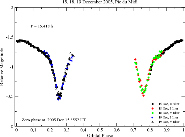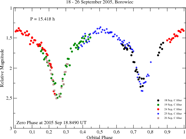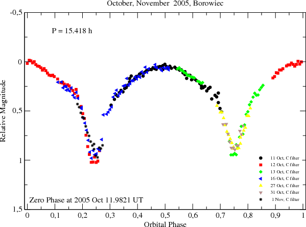 Unfortunately, the lightcurve from December 2005 presented in Fig. 4 is incomplete. Despite this, we see eclipses of 0.75 mag depth and a part of a rotational component that is of 0.3 mag amplitude.