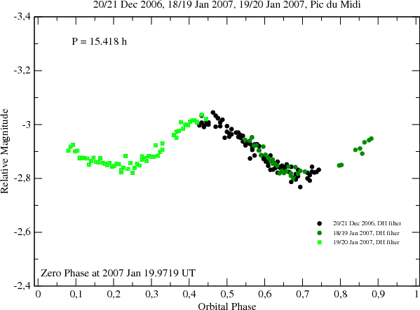 Lundia was also observed in its next oposition in December 2006 and January 2007 at Pic du Midi. No eclipses were visible in the lightcurve of 0.2 mag total amplitude (Fig. 6).