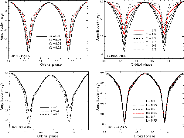 q, k) on the morphology of the resulting lightcurve. Figure 8 is devoted to this goal. The lightcurves were computed for an arbitrary date, in November 2005 for the effect of