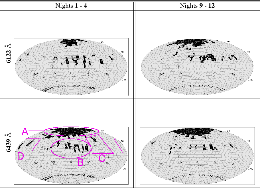 Figure B.1: Cross-correlation maps comparing the Doppler images of Fig. 7 ( upper panel) and reconstructions using Marsden et al.'s differential rotation law ( lower panel). See text for detailed information. |