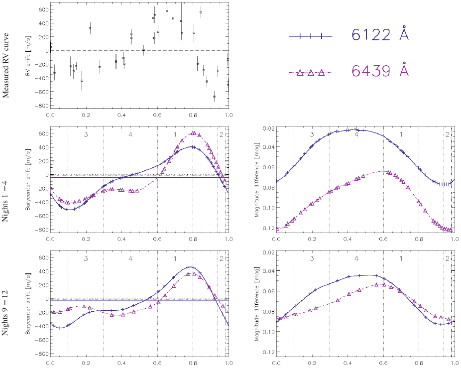 The data cover 8 nights (2 blocks of 4 consecutive nights), i.e., two full rotations of the star, with a homogeneous phase coverage.