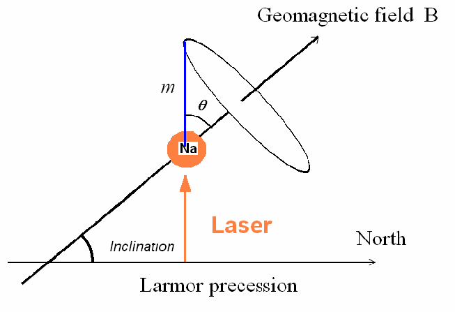 A magnetic field causes the sodium atoms to precess, leading to a cyclic probability redistribution of finding the atom in a certain m-state. It is important to have a quantitative assessment of the extent to which the geomagnetic field can reduce the degree of optical pumping.
