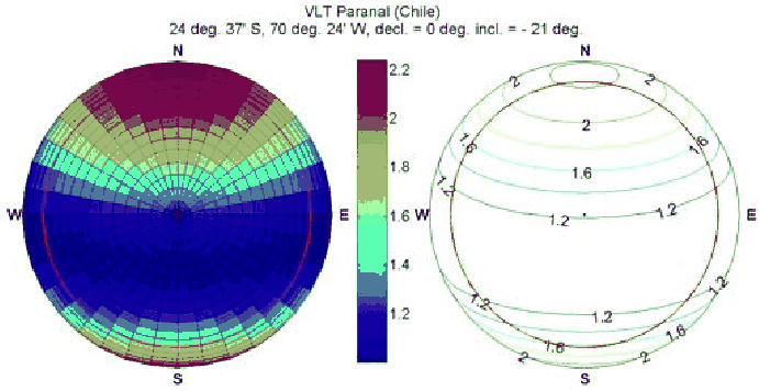 telescope site. The maximum return is observed at the location in the sky