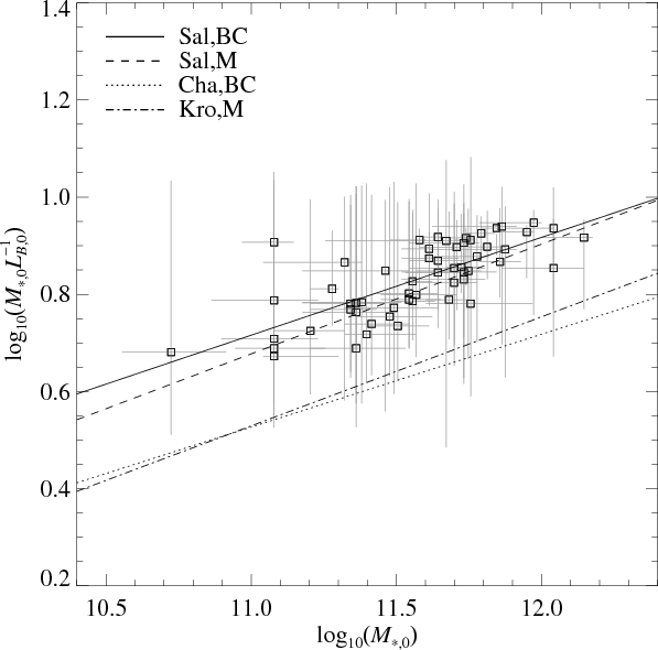 On the other hand, we note that the photometric mass estimates depend on the adopted metallicity and, as already discussed, on the IMF. The effects of metallicity and the fraction of massive (