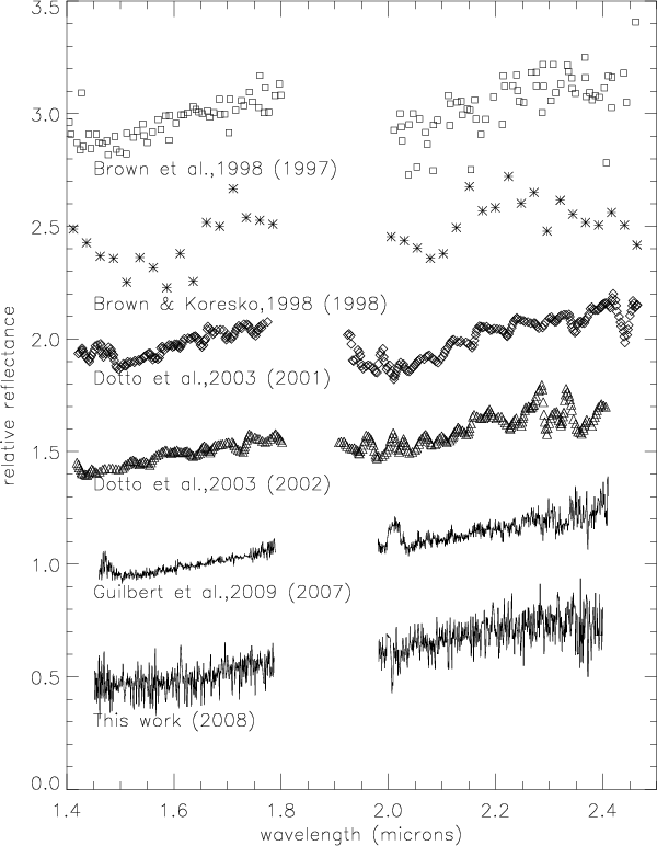 Figure 5: H+K spectrum of Chariklo obtained by different groups. The observing date is indicated into brackets. |