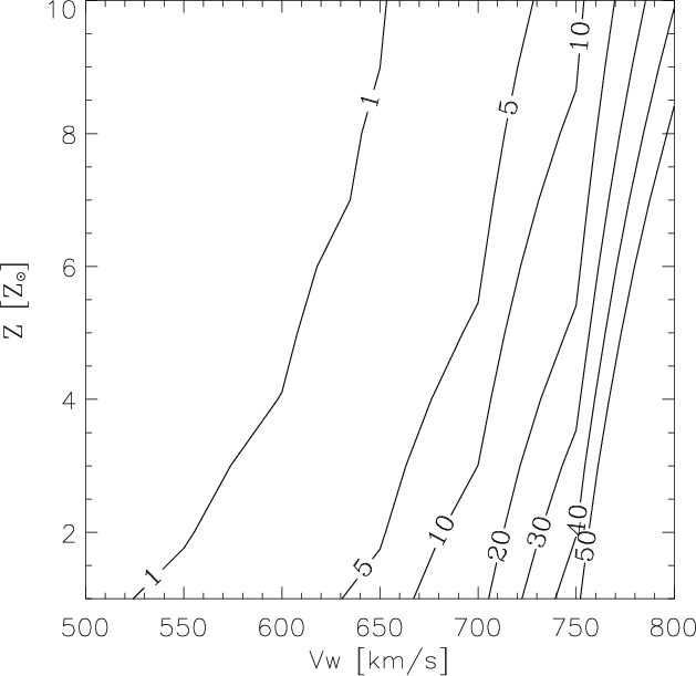 500-1500 km s-1 range (see also, Silich et al. 2004). The