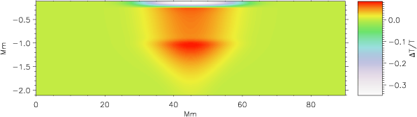 We have presented numerical modelling and a helioseismological analysis