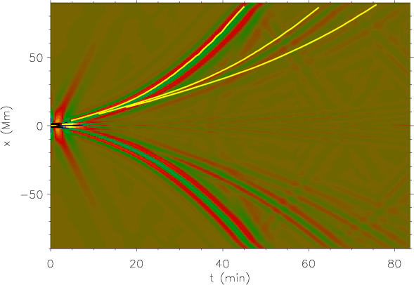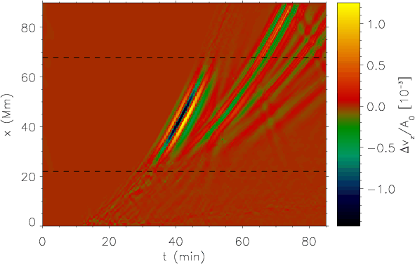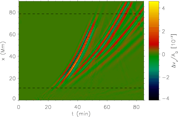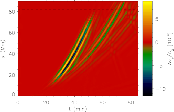 simulated solar surface, the effects of the interaction of the wave packet