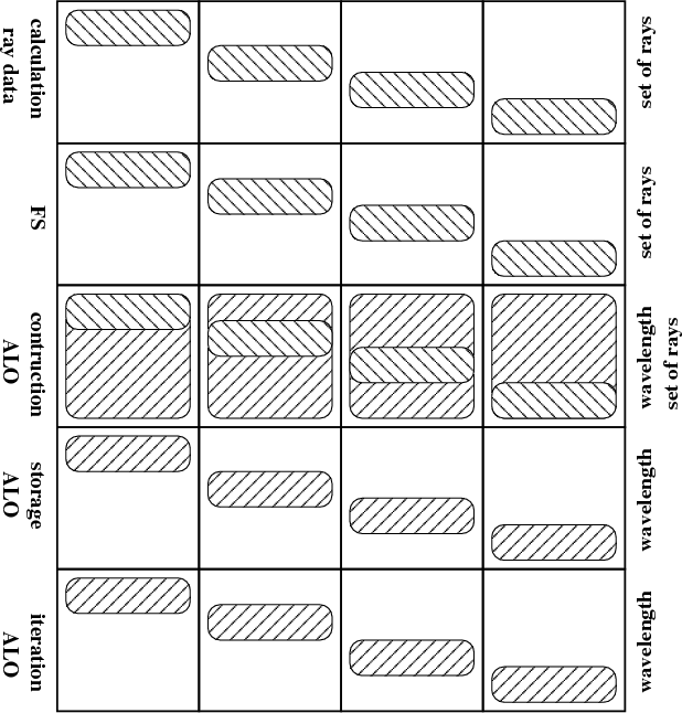 Because the mean intensity at a wavelength l depends on quantities at the wavelengths l-1, l, and l+1, the domain decomposition of the ALO in wavelength must be performed blockwise for the GS method to be applicable. These blocks must overlap with one wavelength point at the boundaries to minimise communication.