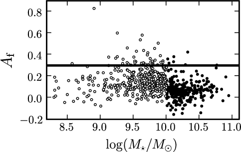 automatic asymmetry index A (Abraham et al. 1996; Conselice et al. 2000) are assumed to identify