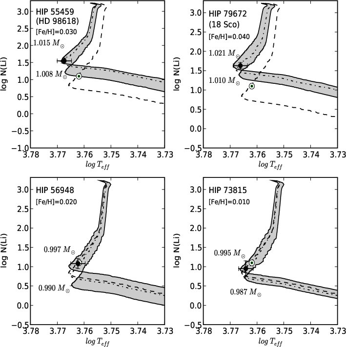 Results. Our best-fit model for each solar twin provides a mass and age solution constrained by their Li content and