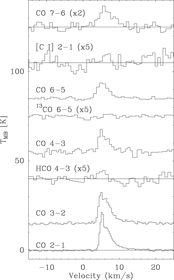 from J=6-5 to J=8-7, as well as [C I] 2-1. These observations