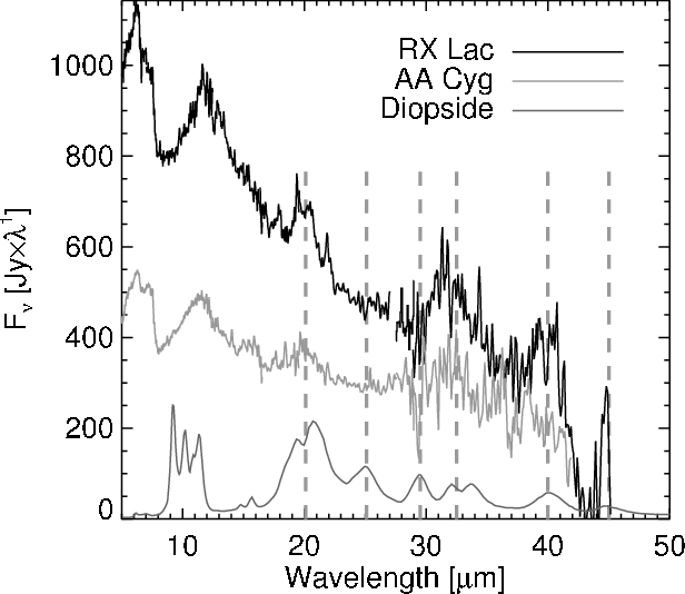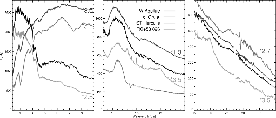 Sloan & Price (1998) and Speck et al. (2000) for extensive and thorough comparisons of the relevant literature and the various interpretations of the dust emission characteristics.